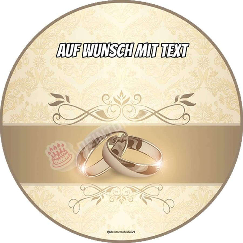 Tortenaufleger Hochzeit 'Goldene Eheringe mit personalisiertem Design'