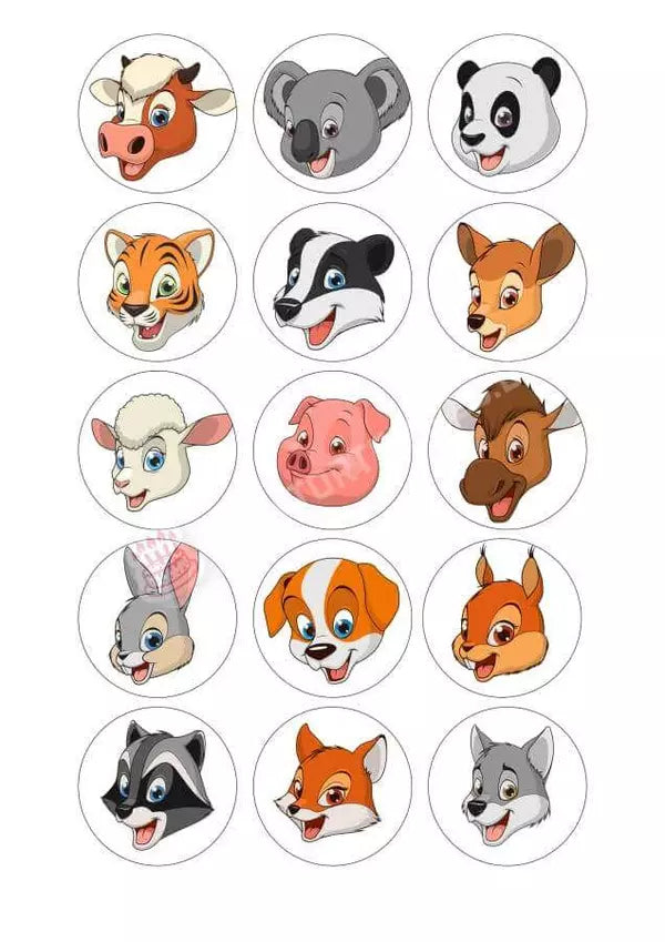 Muffinaufleger Zeichentrick Tierköpfe in 4-5cm Kreis